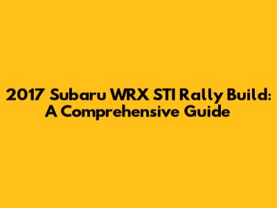 2017 Subaru WRX STI Rally Build: A Comprehensive Guide