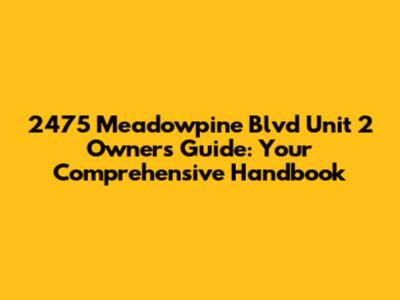 2475 Meadowpine Blvd Unit 2: Your Ownership Guide