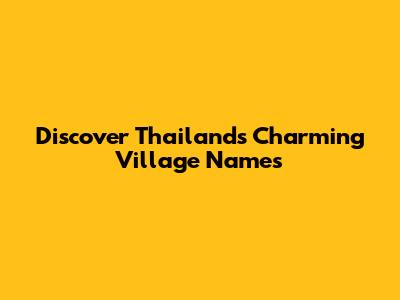 Discover Thailand's Charming Village Names