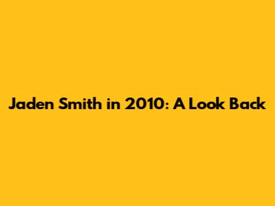 Jaden Smith In 2010: A Look Back