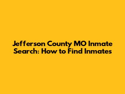 Jefferson County MO Inmate Search: How To Find Inmates