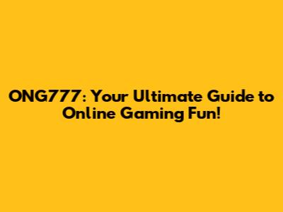 ONG777: Your Ultimate Guide To Online Gaming Fun!